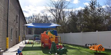 실외에서 활동할수 있는 울타리가 쳐친 넓은 놀이터가 있습니다. 아이들이 마음 껏 뛰어 놀수 있는 넓은 공간으로 여러 놀이 기구도 구비되어 있습니다.