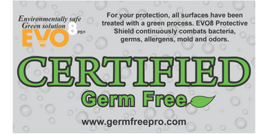 EVO8 보호막(3단계 적용)은 모든 표면에 분자적으로 결합합니다. 모든 알레르기 유발 물질, 박테리아, 세균 또는 곰팡이는 하루 24시간, 일주일 내 접촉 시 소멸됩니다.